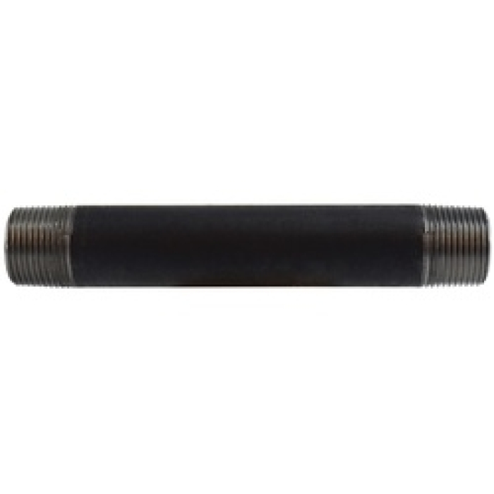 MIDLAND INDUSTRIES Seamless Pipe Nipple, Nipple Fitting, 3/4 in Connection Size 1, Connection Type 1: MPT, 3/4 in Connection Size 2, Connection Type 2: MPT, MPT|MPT Connection, 4 in Length, 3/4 in Diameter, Steel, Material Construction: Steel, Black, 3/4-14 Thread, 0.79 in Thread Length, 0.154 in Wall Thickness, SCH 80, Pressure Class: 300 lb, 850 psi, Dimension Standards: ANSI B1.20.1, -200 to 150 deg F