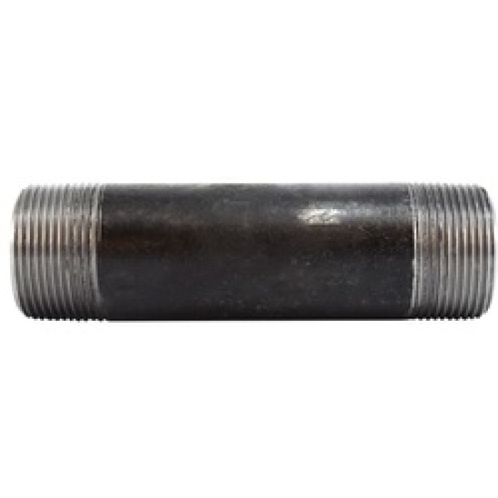 MIDLAND INDUSTRIES Seamless Pipe Nipple, Nipple Fitting, 1-1/4 in Connection Size 1, Connection Type 1: MPT, 1-1/4 in Connection Size 2, Connection Type 2: MPT, MPT|MPT Connection, 4 in Length, 1-1/4 in Diameter, Steel, Material Construction: Steel, Black, 1-1/4-11-1/2 Thread, 1.01 in Thread Length, 0.191 in Wall Thickness, SCH 80, Pressure Class: 300 lb, 1900 psi, Dimension Standards: ANSI B1.20.1, -200 to 150 deg F