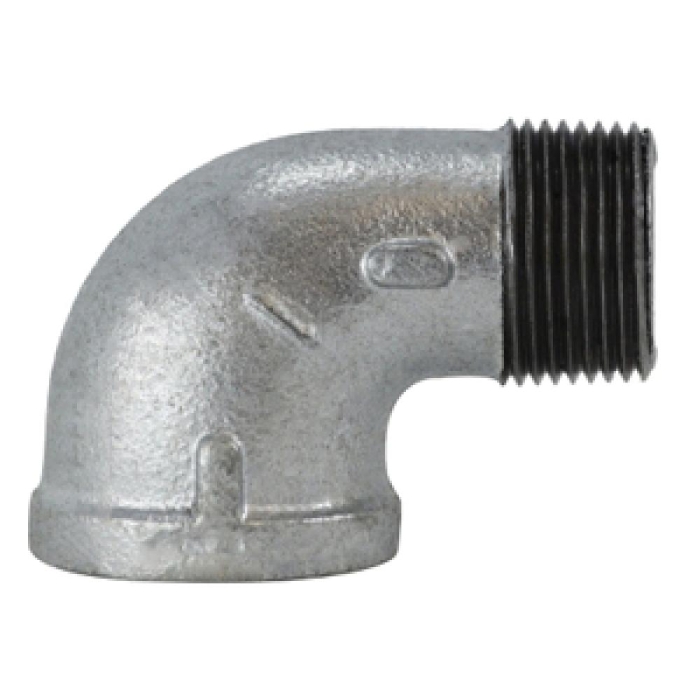 MIDLAND INDUSTRIES 90 deg Street Elbow, 90 deg Elbow Fitting, 4 in Connection Size 1, Connection Type 1: MPT, 4 in Connection Size 2, Connection Type 2: FPT, MPT|FPT Connection, Iron, Material Construction: Malleable Iron, Finish: Galvanized, 4-8 Thread, Pressure Class: 150 lb, Dimension Standards: ANSI B16.3, -20 to 350 deg F, Additional Information: 3.72 x 5.57 in Center to End