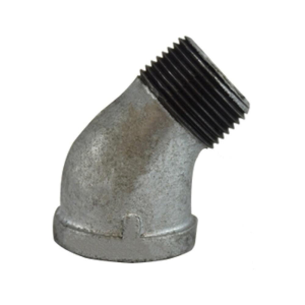 MIDLAND INDUSTRIES 45 deg Street Elbow, 45 deg Elbow Fitting, 4 in Connection Size 1, Connection Type 1: MPT, 4 in Connection Size 2, Connection Type 2: FPT, MPT|FPT Connection, Iron, Material Construction: Malleable Iron, Finish: Galvanized, 4-8 Thread, Pressure Class: 150 lb, Dimension Standards: ANSI B16.3, -20 to 350 deg F, Additional Information: 2.61 x 3.9 in Center to End