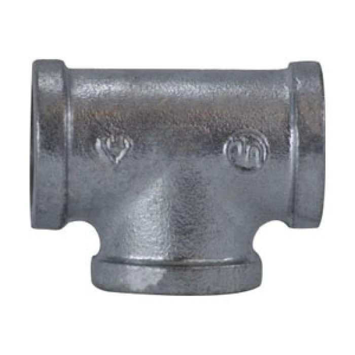 MIDLAND INDUSTRIES Pipe Tee, Tee Fitting, 4 in Connection Size 1, Connection Type 1: FPT, 4 in Connection Size 2, Connection Type 2: FPT, Connection Size 3: 4 in, Connection Type 3: FPT, FPT|FPT|FPT Connection, Iron, Material Construction: Malleable Iron, Finish: Galvanized, 4-8 Thread, Pressure Class: 150 lb, Dimension Standards: ANSI B16.3, -20 to 350 deg F, Additional Information: 3.79 in Center to End