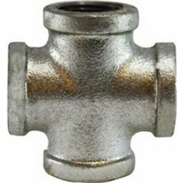 MIDLAND INDUSTRIES Cross, Connection Type 1: NPT, Connection Size 1: 1-1/4 in, Connection Type 2: NPT, Connection Size 2: 1-1/4 in, Connection Type 3: NPT, Connection Size 3: 1-1/4 in, Connection Type 4: NPT, Connection Size 4: 1-1/4 in, 150 lb, Material Construction: Malleable Iron, Finish: Galvanized, Dimensions: 3-1/2 in L, Dimension Standards: ANSI B16.3, ANSI B2.1 or BS 21, ASME B1.20.1, -20 to 350 deg F