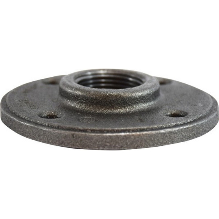 MIDLAND INDUSTRIES Round Floor Flange, Connection Size 1: 1/2 in, 150 lb, 1/4 in Bolt Hole Diameter, 1/2 in Thick Flange, Material Construction: Malleable Iron, Black, Dimensions: 3-1/2 in OD, Dimension Standards: ANSI B16.3, ANSI B2.1 or BS 21, ASME B1.20.1, -20 to 350 deg F