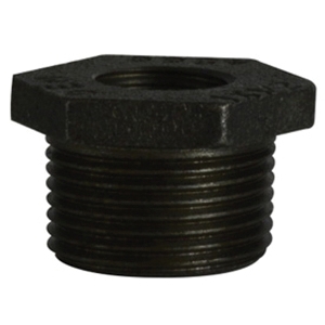 MIDLAND INDUSTRIES Double-Tapped Inside Hex Bushing, Connection Type 1: NPT, Gender 1: Male, Connection Size 1: 2 in, Connection Type 2: NPT, Gender 2: Female, Connection Size 2: 1 in, Hex Size: 1.77 in, 150 lb, Material Construction: Malleable Iron, Black, Dimensions: 1.77 in L, Dimension Standards: ANSI B16.3, ANSI B2.1 or BS 21, ASME B1.20.1, -20 to 350 deg F