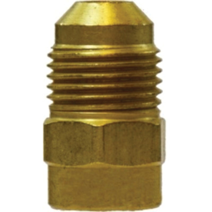 MIDLAND INDUSTRIES Reducing Adapter, Connection Type 1: SAE 45 deg Flare, Gender 1: Male, Connection Size 1: 3/8 in, Connection Type 2: SAE 45 deg Flare, Gender 2: Female, Connection Size 2: 1/2 in, Hex Size: 0.94 in, 750 psi, Material Construction: Brass, For Use With: Copper, Brass, Aluminum, and Steel Hydraulic Tubing that can be Flared, Dimensions: 1.44 in L, -65 to 250 deg F