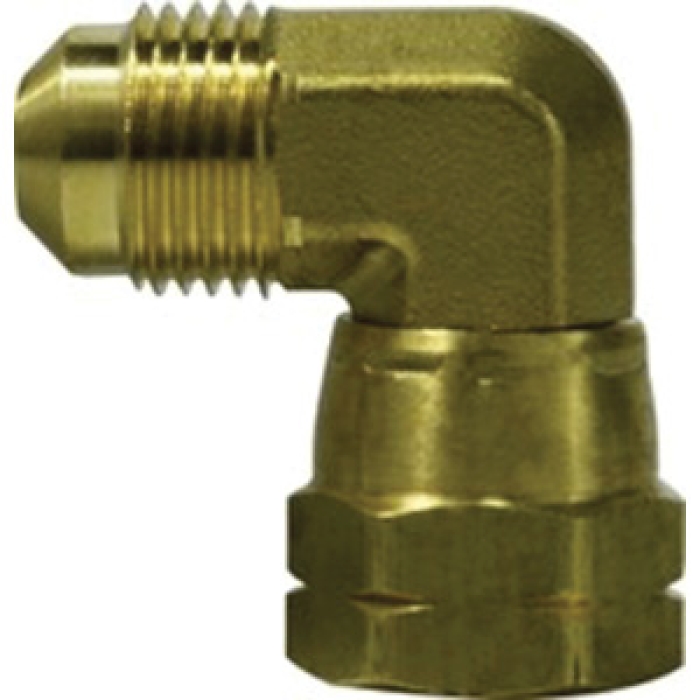 MIDLAND INDUSTRIES 90 deg Swivel Elbow, Connection Type 1: SAE 45 deg Flare, Gender 1: Male, Connection Size 1: 3/8 in, Connection Type 2: SAE 45 deg Flare, Gender 2: Female, Connection Size 2: 3/8 in, Hex Size: 3/4 in, 1000 psi, Material Construction: Forged Brass, For Use With: Copper, Brass, Aluminum, and Steel Hydraulic Tubing that can be Flared, -65 to 250 deg F