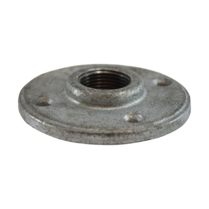 MIDLAND INDUSTRIES Round Floor Flange, Flange Fitting, 1 in Connection Size 1, Connection Type 1: FPT, FPT Connection, Iron, Material Construction: Malleable Iron, Finish: Galvanized, 1-11-1/2 Thread, 0.69 in Flange Thickness, 1/4 in Bolt Hole Diameter, Pressure Class: 150 lb, 150 psi, 4 in W, -20 to 350 deg F, Additional Information: 1.06 lb Weight