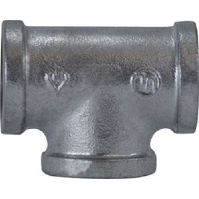 MIDLAND INDUSTRIES Pipe Tee, Connection Type 1: NPT, Connection Size 1: 1/2 in, Connection Type 2: NPT, Connection Size 2: 1/2 in, Connection Type 3: NPT, Connection Size 3: 1/2 in, 150 lb, Material Construction: Malleable Iron, Finish: Galvanized, Dimensions: 2.24 in L, Dimension Standards: ANSI B16.3, ANSI B2.1 or BS 21, -20 to 350 deg F