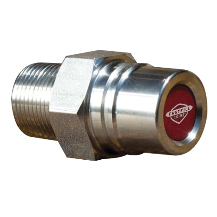 The R100 is the standard model for crankcase oil. This dry break receiver is made up of only metal components and is available in all steel. The R100 has a maximum operating pressure of 500 psi and has a 3/4 in male NPT base. The R100 only connects to a standard N100.