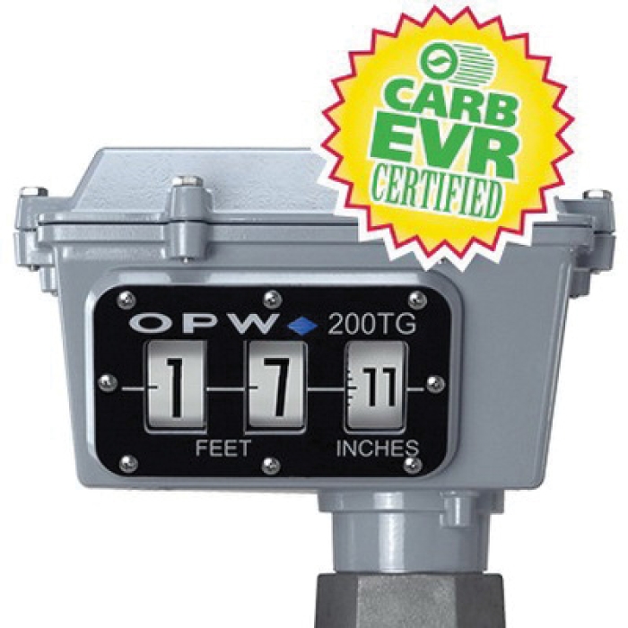 The OPW® 200TG tank gauge is designed for reading liquid levels in horizontal or vertical aboveground storage tanks. The 200TG tank gauge provides an accurate numerical counter readout, eliminating the need for any on-site manual gauging.