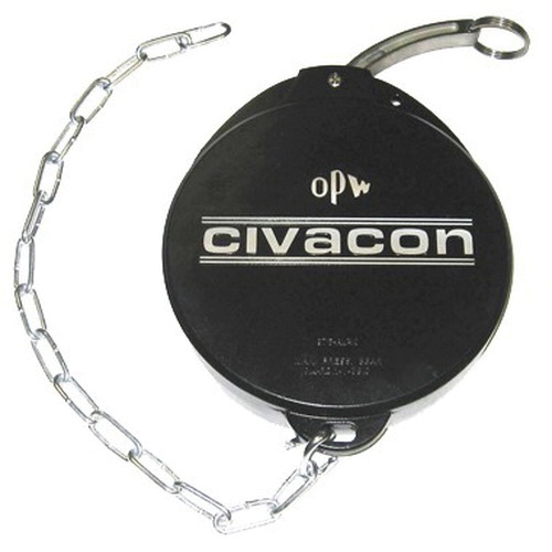 OPW® Midland Dust Cap with Chain, Series: 875, Connection Size 1: 4 in, 14.5 psi, Material Construction: Die-Cast Aluminum, Finish: Black, Dimensions: 1.705 in W x 8.041 in H, -40 to 158 deg F