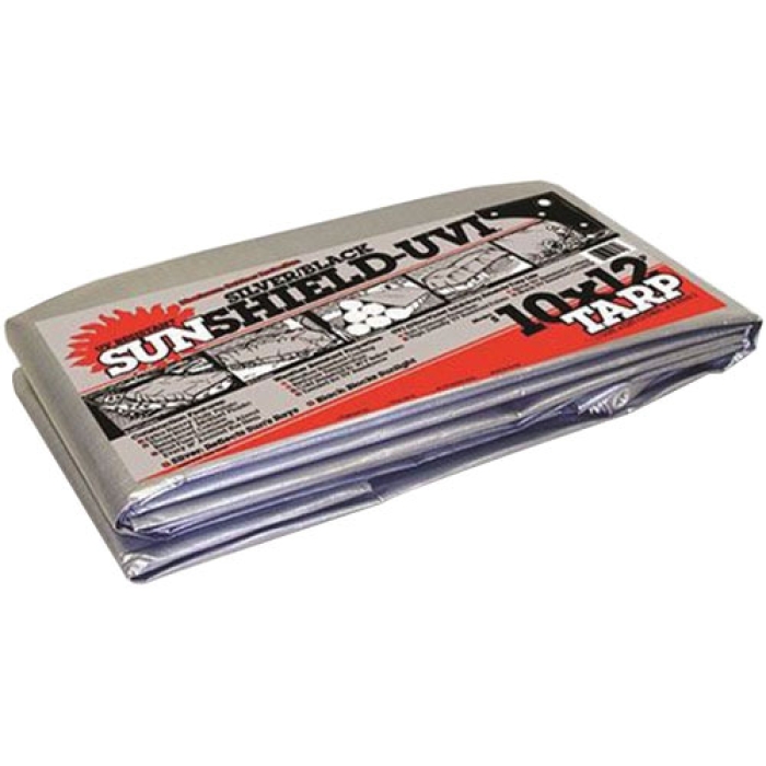 Polytuf® Brands 6 oz SunShield® Silver/Black tarps are very rugged and designed for use under continuous outdoor exposure. SunShield® is made with black high density woven fabric along with UVI treated coatings on both sides to provide extended life in the sunlight. In addition, using SunShield® with the reflective silver side up will divert both heat and ultraviolet light, while using the black side up will absorb heat and divert ultraviolet light. Both sides are heat and cold-resistant. Our tough SunShield® Silver/Black tarps come in a wider range of sizes to suit both your needs and the consumer’s.