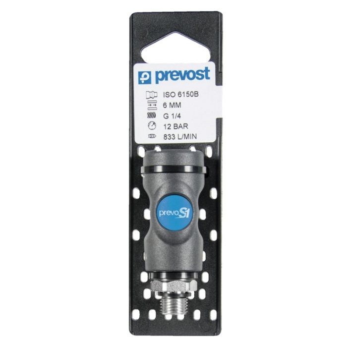 Prevost® Industrial Interchange Safety Quick Coupling On Plate, Series: ISI, Connection Type 1: Quick Disconnect, Connection Size 1: 1/4 in, Connection Type 2: NPT, Gender 2: Male, Connection Size 2: 1/4 in, 12 bar, Dimension Standards: ISO 6150 Series B