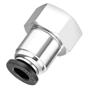 Prevost® Straight Connector, Series: RPD FR, Connection Type 1: Push-to-Connect, Connection Size 1: 3/8 in, Connection Type 2: NPT, Gender 2: Female, Connection Size 2: 3/8 in, 0 - 145 psi, Material Construction: Brass/Polymer, Finish: Nickel-Plated, Dimensions: 1.323 in L, 32 - 140 deg F, For Use With: 3/8 in OD Tubing