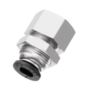 Prevost® Bulkhead Connector, Series: RPD TR, Connection Type 1: Push-to-Connect, Connection Size 1: 1/4 in, Connection Type 2: NPT, Gender 2: Female, Connection Size 2: 1/4 in, 0 - 145 psi, Material Construction: Brass, Finish: Nickel-Plated, Dimensions: 1.201 in L, 32 - 140 deg F, For Use With: 1/4 in OD Tubing