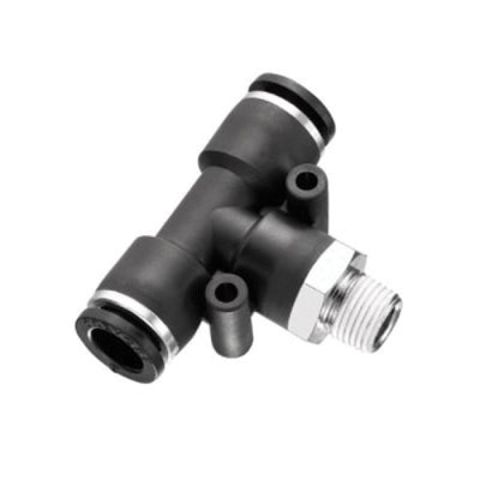 Prevost® Branch Tee, Series: RPT CR, Connection Type 1: Push-to-Connect, Connection Size 1: 1/2 in, Connection Type 2: Push-to-Connect, Connection Size 2: 1/2 in, Connection Type 3: NPT, Gender 3: Male, Connection Size 3: 3/8 in, 0 - 145 psi, Material Construction: Brass/Polymer, Finish: Nickel-Plated, 32 - 140 deg F, For Use With: 1/2 in OD Tubing
