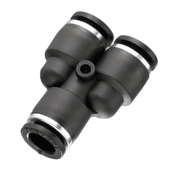 Prevost® Equal Y Fitting, Series: RPY ET, Connection Type 1: Push-to-Connect, Connection Size 1: 1/4 in, Connection Type 2: Push-to-Connect, Connection Size 2: 1/4 in, Connection Type 3: Push-to-Connect, Connection Size 3: 1/4 in, 0 - 145 psi, Material Construction: Brass/Polymer, Finish: Nickel-Plated, Dimensions: 1.457 in L, 32 - 140 deg F, For Use With: 1/4 in OD Tubing