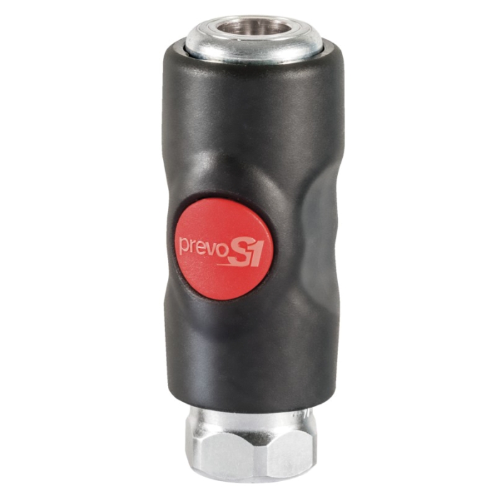 Prevost® Industrial Non-Scratch Anti-Static Coupler, Series: USI, Connection Type 1: Quick Disconnect, Connection Size 1: 1/4 in, Connection Type 2: NPT, Gender 2: Female, Connection Size 2: 1/4 in, Hex Size: 20 mm, 29 - 174 psi, Material Construction: Composite, Dimensions: 1.181 in Dia x 2.795 in L, Dimension Standards: ISO 4414, 5 - 158 deg F