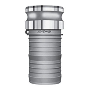 PT Coupling Cam and Groove Adapter, Connection Type 1: Type E, Gender 1: Male, Connection Size 1: 4 in, Connection Type 2: Hose Stem, Connection Size 2: 4 in, 200 psi, Material Construction: Aluminum, Dimensions: 4.71 in OD x 7.2 in L, -150 deg F
