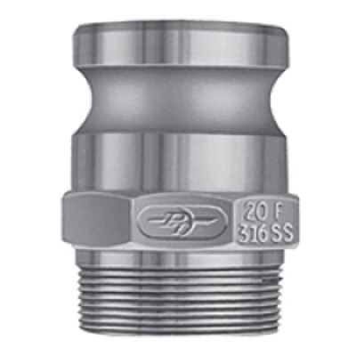 PT Coupling Cam and Groove Adapter, Connection Type 1: Type F, Gender 1: Male, Connection Size 1: 2 in, Connection Type 2: NPT, Gender 2: Male, Connection Size 2: 2 in, 250 psi, Material Construction: Stainless Steel, Dimensions: 3.57 in L x 2.84 in W
