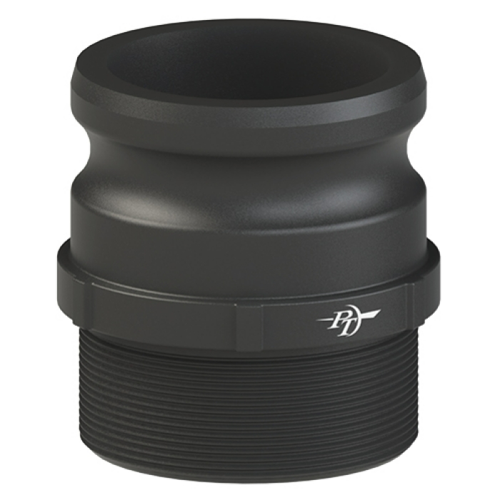 PT Coupling Cam and Groove Adapter, Connection Type 1: Type F, Gender 1: Male, Connection Size 1: 1-1/2 in, Connection Type 2: NPT, Gender 2: Male, Connection Size 2: 1-1/2 in, 100 psi, Material Construction: Polypropylene, Dimensions: 3.29 in L x 2.44 in W
