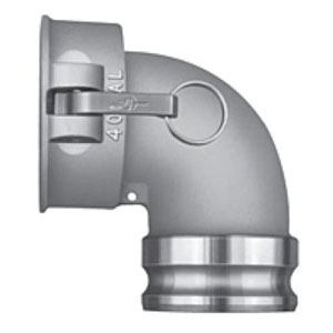 PT Coupling Heavy-Duty Cam and Groove 90 deg Elbow, Connection Type 1: Type C, Gender 1: Female, Connection Size 1: 6 in, Connection Type 2: Type A, Gender 2: Male, Connection Size 2: 6 in, 75 psi, Material Construction: Aluminum/HB, -150 deg F