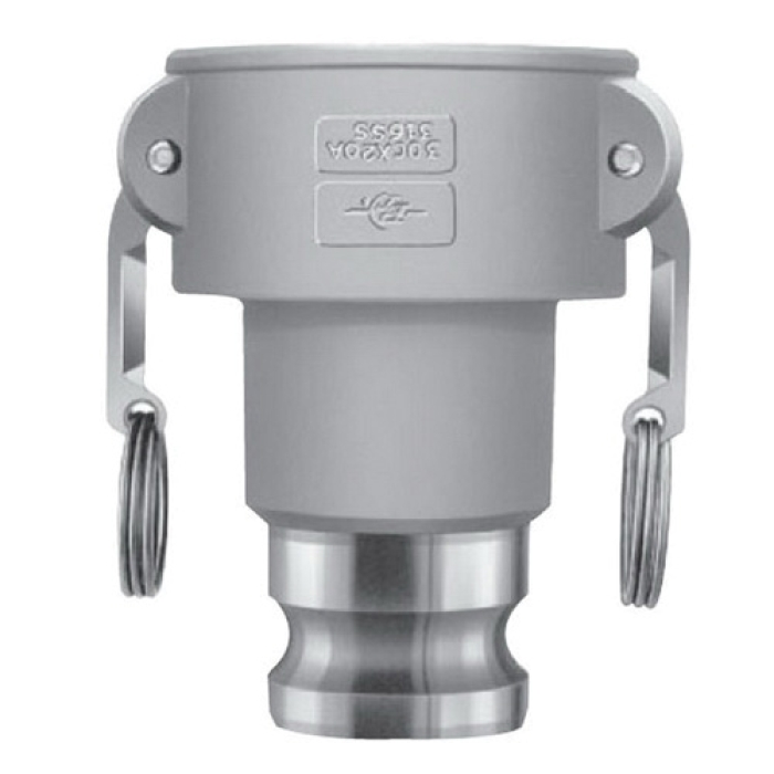 PT Coupling Cam and Groove Long Reducer, Connection Type 1: Type C, Connection Size 1: 2 in, Connection Type 2: Type A, Connection Size 2: 3 in, 250 psi, Material Construction: Brass/HBS, -150 deg F