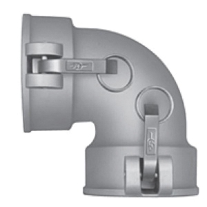 PT Coupling Cam and Groove DDL 90 deg Elbow, Connection Type 1: Type C, Gender 1: Female, Connection Size 1: 4 in, Connection Type 2: Type C, Gender 2: Female, Connection Size 2: 4 in, 150 psi, Material Construction: Aluminum, Finish: Hard-Coated, -150 deg F