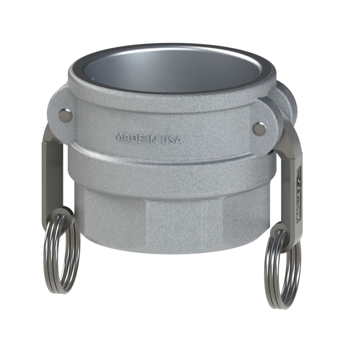 • PT Coupling Cam and Groove Coupler, Connection Type 1: Type D, Connection Size 1: 2 in, Connection Type 2: NPT, Gender 2: Female, Connection Size 2: 2 in, 250 psi, Material Construction: Aluminum/HBS, Dimensions: 3.1 in L, -150 deg F