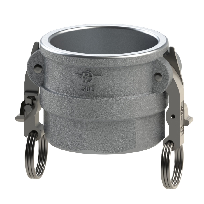 PT Coupling STA-LOK® II Cam and Groove Coupler, Connection Type 1: Type D, Gender 1: Female, Connection Size 1: 2 in, Connection Type 2: NPT, Gender 2: Female, Connection Size 2: 2 in, 250 psi, Material Construction: Aluminum/SLS, Dimensions: 3.1 in L, -150 deg F