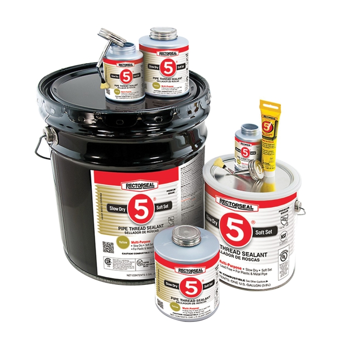 RectorSeal® No. 5® is our most popular thread sealant. It has withstood the test of time in a variety of uses and is widely known as the "standard of the industry". RectorSeal® No. 5® is a non-hardening, slow-drying thread sealant made from special inert fillers dispersed in an oleoresinous base to facilitate its application to threaded pipe connections. RectorSeal® No. 5® is a unique, versatile and reliable sealant that is non-toxic in accordance with NSF Standard 61-G & 372. In addition, it is Underwriters Laboratories Inc. (UL) classified, listed under the Uniform Plumbing Code (IAPMO) File No. 1282 and it is approved and listed with the Canadian Standards Association (CSA).