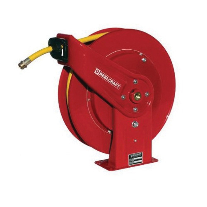 Reelcraft®'s Series 7000 is very robust and ideal for the most demanding applications. The reel's base and guide arm are formed from high-grade steel and engineered with structural forms and gussets to yield the greatest amount of strength. The basic reel without hose can be used for air, water or oil. Guide arm adjusts to seven positions.
