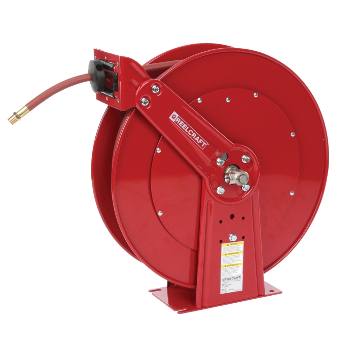 Reelcraft®'s Series 80000 and D80000 spring retractable reels incorporate the most current design and manufacturing techniques to guarantee long life and trouble-free performance. All steel construction and a baked-on powder coat finish combine to produce a rugged, corrosion-resistant product suitable for a wide variety of heavy-duty applications. Series D80000 reels are also supplied with Reelcraft®'s ball-bearing style swivel.