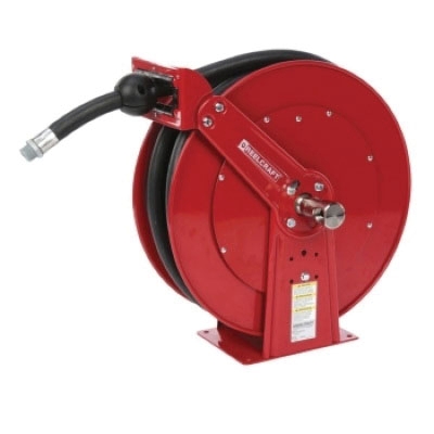 Reelcraft® Red Carbon Steel Spring Retractable Heavy-Duty Low Pressure Fuel Hose Reel, 1 in ID x 50 ft, 50 psi