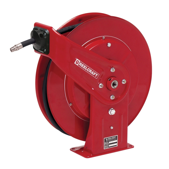 Reelcraft® Red Carbon Steel Spring Retractable Heavy-Duty Low Pressure Fuel Hose Reel, 3/4 in ID x 25 ft, 50 psi