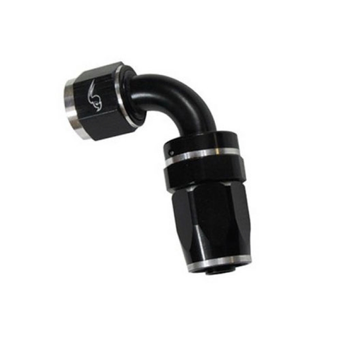 Roadrunner Full Flow 90 deg Hose Fitting, Connection Type 1: Hose, Connection Size 1: 3/4 in, Connection Type 2: JIC Swivel, Gender 2: Female, Connection Size 2: 3/4 in, Material Construction: Aluminum, Finish: Cutting Edge