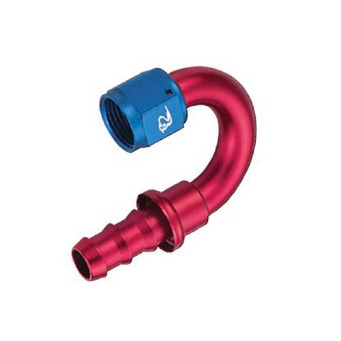 Roadrunner 180 deg Hose Fitting, Hose X Push-On, Anodized, Blue/Red, Aluminum