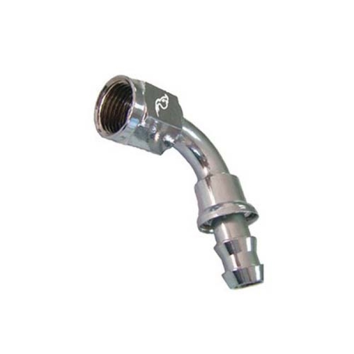Roadrunner 90 deg Hose Fitting, Connection Type 1: Hose, Connection Size 1: 1/2 in, Connection Type 2: Push-On, Connection Size 2: 1/2 in, Material Construction: 6061-T651 Aluminum, Finish: Nickel-Plated