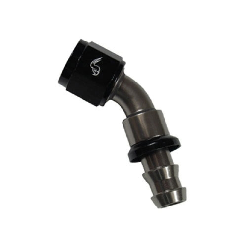 Roadrunner High-Performance 45 deg Hose Fitting, Connection Type 1: Hose, Connection Size 1: 5/8 in, Connection Type 2: Push-On, Connection Size 2: 5/8 in, Material Construction: High-Grade Aluminum, Finish: Anodized, Titanium Black