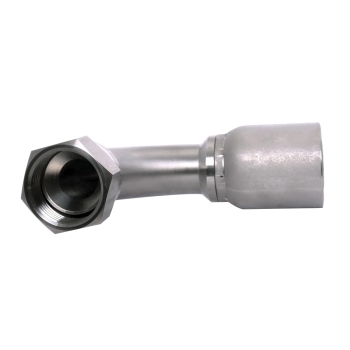SHF 90 deg Crimp Elbow, Series: HY, Connection Type 1: Hose, Connection Size 1: 1/2 in, Hose Dash Size: 08, Connection Type 2: 37 deg JIC Swivel, Gender 2: Female, Connection Size 2: 1/2 in, Nominal Size: 1/2 in, Thread Size 2: 3/4-16, Cut-Off Factor: 2.059 in, Material Construction: 316 Stainless Steel, Dimensions: 3.575 in L