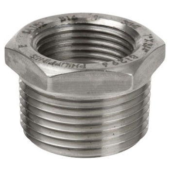 Smith-Cooper® ProPak™ Heavy-Pattern Hex Bushing, Series: S3114HB, Connection Type 1: NPT, Gender 1: Male, Connection Size 1: 1/4 in, Connection Type 2: NPT, Gender 2: Female, Connection Size 2: 1/8 in, Hex Size: 0.69 in, 150 lb, Material Construction: Cast 304 Stainless Steel, Dimensions: 0.89 in L, Dimension Standards: ASME B1.20.1