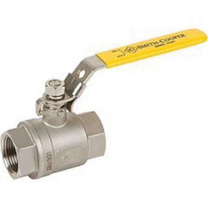 Smith-Cooper® 2-Piece Full-Port Ball Valve, Series: SC201, Nominal Size: 1-1/4 in, Connection Type: Threaded, Actuator Type: Locking Handle, Material Construction: 316 Stainless Steel, 316 Stainless Steel Ball, RTFE Seat, T-316 Stainless Steel Stem Trim, PTFE Seal, 1000 psi