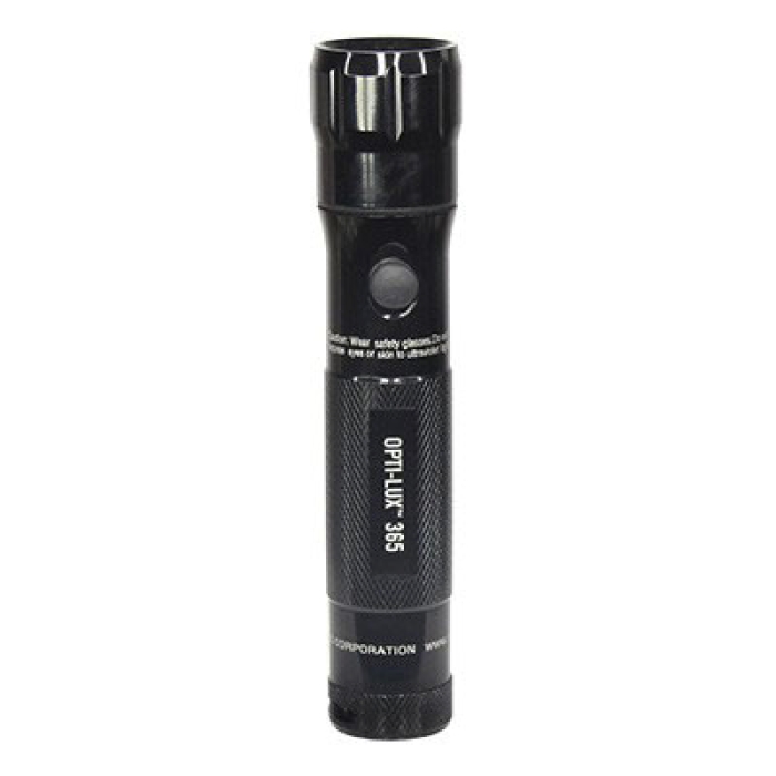 Spectroline® OPTI-LUX™ UV Leak Detection Flashlight, Beam Distance: 25 ft, Battery Size: (3) AAA, Battery Life: 4 hr, Bulb Type: UV LED, Battery Chemistry: Lithium-Ion, Battery Included: Yes, Rechargeable: Yes, Dimensions: 1-1/4 in Dia x 6 in L