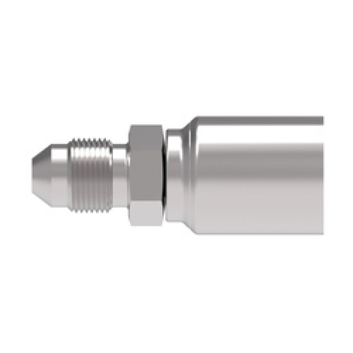 Synflex® Straight Crimp Hose Fitting, 4T Series, Hose Fitting Fitting, 3/16 in Connection Size 1, Connection Type 1: Hose, 7/16 in Connection Size 2, Connection Type 2: Male SAE 37 deg JIC, Hose|Male JIC Connection, #3 Hose Dash, Steel, Material Construction: Carbon Steel, Finish: Dura-Kote Plated, 7/16-20 Thread, 1/2 in Hex, For Use With: Synflex® Optimum Thermoplastic Hydraulic Hoses, 1.66 in L x 0.68 in W x 0.68 in H, Additional Information: 0.1 in ID x 0.68 in OD Dimensions