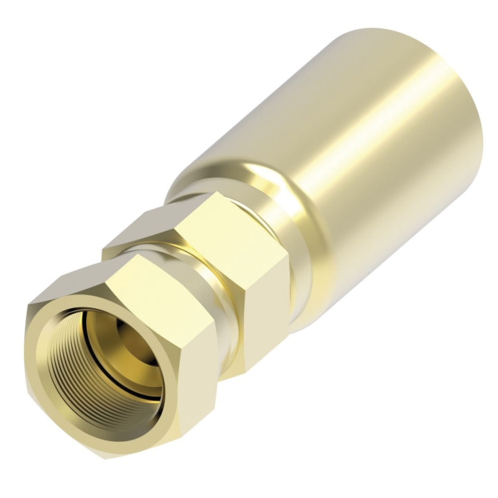 Synflex® 906 Brass Female SAE 37 deg JIC Swivel Permanent Swage Straight Hose Fitting, 3/8 in