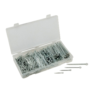 Includes | : | (380) 1/16 x 1 in, (240) 3/32 x 1 in, (140) 3/32 x 1-1/2 in, (115) 1/8 x 1-1/4 in, (75) 1/8 x 2 in, (50) 5/32 x 2-1/2 in Cotter Pin, and Plastic Case |