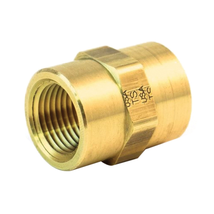 Tramec Sloan Pipe Coupling, Series: S207, Connection Type 1: NPT, Gender 1: Female, Connection Size 1: 1/8 in, Connection Type 2: NPT, Gender 2: Female, Connection Size 2: 1/8 in, Material Construction: Brass, For Use With: Brass, Copper or Iron Pipe, -65 to 250 deg F