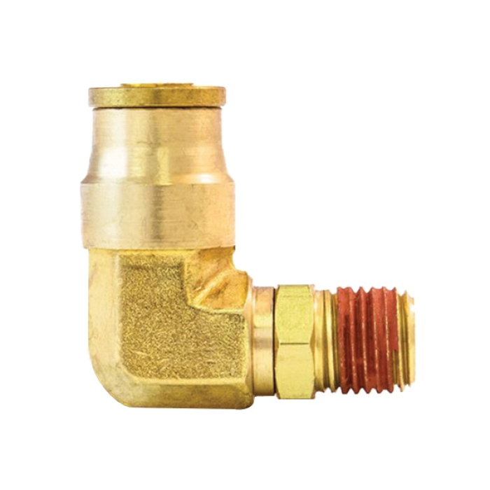 Tramec Sloan 90 deg Reducing Swivel Elbow, Series: S269PMT, Connection Type 1: Push-to-Connect, Connection Size 1: 5/8 in, Connection Type 2: NPT, Gender 2: Male, Connection Size 2: 1/2 in, 145 psi, Material Construction: Brass, -40 to 225 deg F, For Use With: SAE J844 Air Brake Tubing