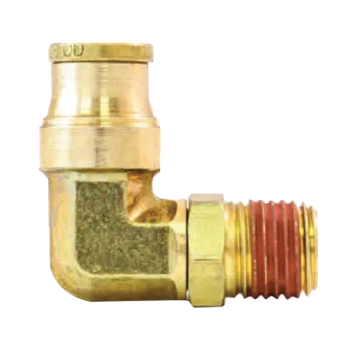 Tramec Sloan 90 deg Swivel Elbow, Series: S269PMT, Connection Type 1: Push-to-Connect, Connection Size 1: 3/8 in, Connection Type 2: NPT, Gender 2: Male, Connection Size 2: 3/8 in, 145 psi, Material Construction: Brass, -40 to 225 deg F, For Use With: SAE J844 Air Brake Tubing