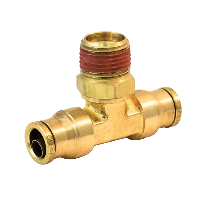 Tramec Sloan Reducing Swivel Branch Tee, Series: S272PMT, Connection Type 1: Push-to-Connect, Connection Size 1: 1/4 in, Connection Type 2: Pipe, Connection Size 2: 1/8 in, 145 psi, Material Construction: Brass, -40 to 225 deg F, For Use With: SAE J844 Air Brake Tubing